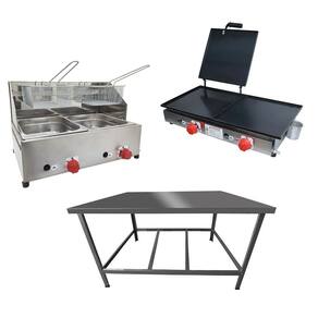 Esse Kit conta com Mesa de Manipulação para você preparar os alimentos, Fritadeira para fritura de suas porções e uma Chapa para preparação do seu cardápio!