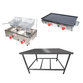 Esse Kit conta com Mesa de Manipulação para você preparar os alimentos, Fritadeira para fritura de suas porções e uma Chapa para preparação do seu cardápio!