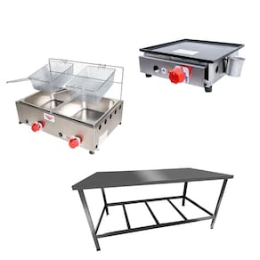 Esse Kit conta com Mesa de Manipulação para você preparar os alimentos, Fritadeira para fritura de suas porções e uma Chapa para preparação do seu cardápio!