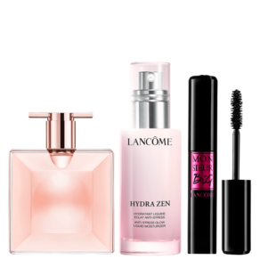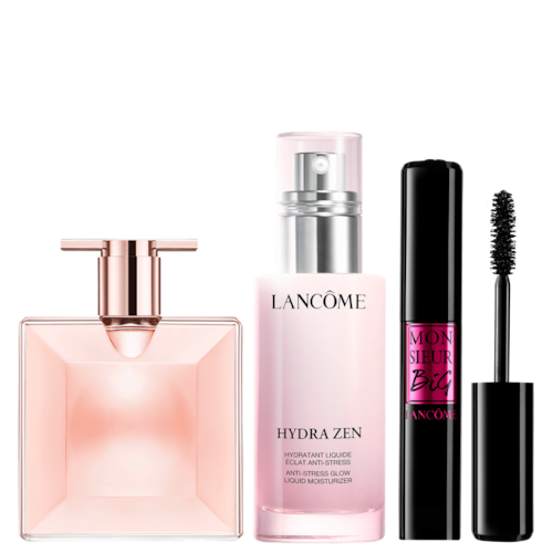 Conjunto feminino com perfume Idôle chipre floral, máscara de cílios e hidratante Lancôme. Um toque de cintilância.