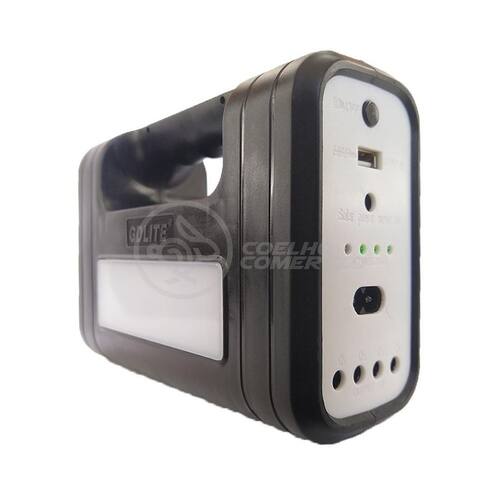Kit Lanterna Placa Solar Carregador Portatil Energia Nº 6 Gdlite -A energia solar fornece corrente contínua para iluminação e carregamento de dispositivos móveis. Além de ser útil em momentos de necessidade, o sistema solar também é útil para eventos ao ar livre e viagens noturnas. Ele também vem com um painel solar com lanternas, lâmpadas LED e uma Placa solar. -utilizando energia solar renovável, este dispositivo de iluminação é obrigatório durante apagões e situações de emergência. Este dispositivo também é fácil de usar, muito intuitivo e pratico. Também foi comprovado que não há ruído, permitindo que você aprecie as atividades ao ar livre ou a paz e tranquilidade da noite. Características do Produto Cor: Preto Capacidade: 4500mAh Potência: 20w Entrada USB para carregar celulares ou outros equipamentos Material: Polipropileno e Componentes Eletrônicos. Produto 100% autêntico e de alta qualidade Possui indicador de nível de bateria Carregamento Adaptador de Tomada: Bivolt 110/220V - 50 / 60Hz Carregamento também por Placa Solar Entrada: DC 6V Saída: DC 9V Saída USB: 4x 5V = 0,5A Tempo de carregamento: 8-10 horas Tempo de Recarga no Sol: 12hs Tempo de trabalho: 7 à 12 horas A Lâmpada Led É 90 Lumens, A Luz Lateral É 150 Lumens Quantidade de Leds Lâmpada Bulbo: 8 Potência Lâmpada Bulbo: 3W Dimensões Altura x Largura x Comprimento : Medidas Placa Solar: 2 cm x 14 cm x 26 cm Medidas Lâmpada Bulbo: 9cm x 6cm Comprimento Cabo da Lâmpada Bulbo: 3 metros 40 cm Comprimento Cabo Fonte Controle Principal: 50 cm Conteúdo da embalagem 1 Controle Principal Acoplado no Painel , com entradas para Lâmpadas, Fontes, USB, Liga/Desliga. 3 Lâmpadas Bulbo 1 Placa Solar 1 Cabo USB 5 EntradasNº Certificado INMETRO: BR34048003Certificador: BVQI Marca: Gdlite