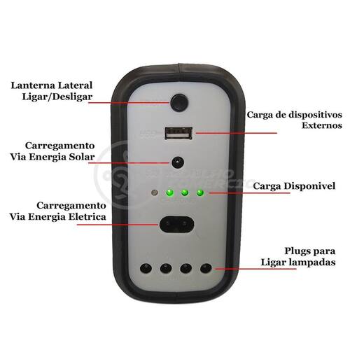 Kit Lanterna Placa Solar Carregador Portatil Energia Emergência Painel Lampadas Acampamento Camping Gdlite -A energia solar fornece corrente contínua para iluminação e carregamento de dispositivos móveis. Além de ser útil em momentos de necessidade, o sistema solar também é útil para eventos ao ar livre e viagens noturnas. Ele também vem com um painel solar com lanternas, lâmpadas LED e uma Placa solar. -utilizando energia solar renovável, este dispositivo de iluminação é obrigatório durante apagões e situações de emergência. Este dispositivo também é fácil de usar, muito intuitivo e pratico. Também foi comprovado que não há ruído, permitindo que você aprecie as atividades ao ar livre ou a paz e tranquilidade da noite. Características do Produto Cor: Preto Capacidade: 4500mAh Potência: 20w Entrada USB para carregar celulares ou outros equipamentos Material: Polipropileno e Componentes Eletrônicos. Produto 100% autêntico e de alta qualidade Possui indicador de nível de bateria Carregamento Adaptador de Tomada: Bivolt 110/220V - 50 / 60Hz Carregamento também por Placa Solar Entrada: DC 6V Saída: DC 9V Saída USB: 4x 5V = 0,5A Tempo de carregamento: 8-10 horas Tempo de Recarga no Sol: 12hs Tempo de trabalho: 7 à 12 horas A Lâmpada Led É 90 Lumens, A Luz Lateral É 150 Lumens Quantidade de Leds Lâmpada Bulbo: 8 Potência Lâmpada Bulbo: 3W Dimensões Altura x Largura x Comprimento : Medidas Placa Solar: 2 cm x 14 cm x 26 cm Medidas Lâmpada Bulbo: 9cm x 6cm Comprimento Cabo da Lâmpada Bulbo: 3 metros 40 cm Comprimento Cabo Fonte Controle Principal: 50 cm Conteúdo da embalagem 1 Controle Principal Acoplado no Painel , com entradas para Lâmpadas, Fontes, USB, Liga/Desliga. 3 Lâmpadas Bulbo 1 Placa Solar 1 Cabo USB 5 Entradas