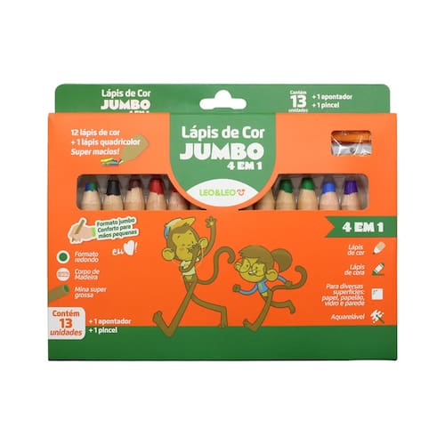 • 4 em 1: lápis de cor, lápis de cera, para diversas superfícies e aquarelável.
