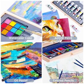 DESIGN DE CAVALETE DE MESA ADICIONADO O kit de desenho Color More de 85 peças está equipado com um cavalete de madeira para segurar a tela com um ângulo de visão ideal, percebendo em qualquer lugar que você possa pintar. Este conjunto de artista é um presente ideal para adultos, estudantes, artistas ou qualquer outro amantes da arte. OS ESSENCIAIS 1 cavalete de madeira, 12 lápis de desenho B 6B, HB, H 5H, 12 bolos de aquarela, 8 tintas acrílicas, 28 lápis de aquarela, 10 pincéis de artista, 8 pastéis de óleo, 1 paleta de plástico, 1 borracha de massa , 1 apontador de madeira1x50 folha de desenho1x24 folha de acrílico e 1 caixa de madeira. Este conjunto de tintas tem tudo o que você precisa para ser um artista. AMPLA UTILIZAÇÃO Este kit de arte versátil inclui todas as ferramentas de desenho e pintura adequadas para amadores que adoram pintar e até gavetas profissionais que trabalham em papel artesanal ou de construção e esboços de detalhes. São as melhores ferramentas para mostrar o incrível talento de desenho de alguém. Nossas lindas cores e ferramentas de design são bem organizadas e dispostas em uma caixa de madeira para que você possa criar arte onde quer que vá. NÃO TÓXICO E TRANSPORTE DE VIAGEM Cada giz de cera, tinta e pastel nesta caixa de arte não é tóxico. É de usar para todos. Ele vem bem organizado e embalado com uma caixa de madeira resistente com uma alça para transporte e zenamento convenientes, facilitando o transporte com você Marca: Não Informado