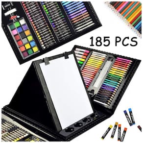 Fácil de transportar o conjunto de arte de cavalete de três faces dupla face de 185 peças está equipado com um cavalete pop up de lado duplo embutido, facilitando para o seu filho colorir e criar em qualquer lugar que você possa abrir seu estojo Estojo de transporte portátil, mantém seus componentes organizados.