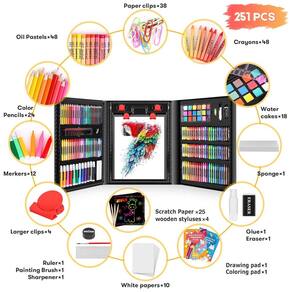 Caixa de presente embalada, fácil de transportar e usar O estojo de conjuntos de arte inclui cavalete pop up de dupla face no interior, facilitando para o seu jovem artista colorir em qualquer lugar que a criatividade surja ou compartilhar com amigos ou familiares. Estojo de transporte portátil conveniente dobra se para que possa ser em casa ou na estrada. Ótimo para viajar e é um ótimo presente para crianças, adolescentes, meninas, meninos de 6 7 8 9 10 11 12 anos.