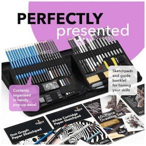 FEITO PARA FACILITÁ LO Desenho incrivelmente abrangente e conjunto de esboços em estojo com zíper robusto e digno de presente desdobra se em seções organizadas que defendem a seleção simples funcionalidade de levar para qualquer lugar. POTÊNCIA DE FOGO FORMIDÁVEL Com curadoria de artistas internos para desenhistas experientes e aprendizes lápis de grafite bastões, lápis de carvão bastões, lápis pastel bastões, lápis hidrossolúveis pincéis de água, canetas delineadoras e liquidificadores, borrachas e ferramentas. UMA ALEGRIA DE USAR Equilibrado e moldado para segurar e controlar qualidade premium para aplicação suave desempenho confiável de madeira sem lascas, cabos que desafiam a quebra tudo que você precisa para explorar técnicas emocionantes. GUIA PARA DESENVOLVER SUAS HABILIDADES Livreto de 28 páginas detalhado e fácil de seguir, repleto de demonstrações e dicas para aproveitar ao máximo os materiais de arte, além de tutorial e seleção de blocos de desenho Marca: Não Informado
