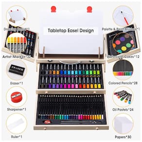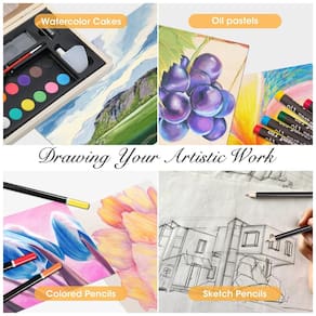 Descubra Talentos Artísticos Este kit de arte multifuncional contém vários materiais de desenho e pintura e é o melhor conjunto de arte para hobbistas mostrarem talentos artísticos. Esta caixa de arte é um bom kit de iluminação. Estudantes e iniciantes podem tentar usar marcadores, lápis de cor, bolos de aquarela e pastéis de óleo para se tornarem artistas famosos passo a passo