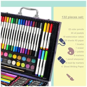 Inclui todas as ferramentas necessárias para um artista iniciante e artistas profissionais. Conjunto de arte perfeito para adultos e crianças. Contém 22 lápis de cor 40 pastéis de óleo 18 marcadores de ponta dupla 1 apontador de lápis 6 marcadores 18 bolos em aquarela 1 borracha 1 paleta 1 escova 4 folhas de papel para escrever 20 folhas de papel A5. O estojo oferece amplo zenamento para os materiais de arte, mantendo os organizados e abre para facilitar o acesso. Os fechos de travamento na parte externa do estojo facilitam o transporte. É durável para manter tudo . Este conjunto de arte deluxe de 132 peças inclui todas as ferramentas necessárias para um artista criar um belo conteúdo. É adequado para artistas iniciantes e veteranos, crianças e adultos. Este conjunto de arte de alta qualidade é amplamente utilizado por estudantes e artistas profissionais. Este conjunto é leve e, portanto, ideal para viagens. Se você estiver visitando amigos ou parentes ou no avião, carro ou restaurante. É uma maneira perfeita de manter os pequenos ocupados enquanto se divertem desenhando, desenhando ou pintando Marca: Não Informado