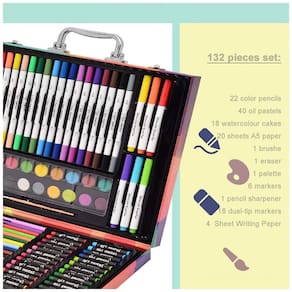 Inclui todas as ferramentas necessárias para um artista iniciante e artistas profissionais. Conjunto de arte perfeito para adultos e crianças. Contém 22 lápis de cor 40 pastéis de óleo 18 marcadores de ponta dupla 1 apontador de lápis 6 marcadores 18 bolos em aquarela 1 borracha 1 paleta 1 escova 4 folhas de papel para escrever 20 folhas de papel A5. O estojo oferece amplo zenamento para os materiais de arte, mantendo os organizados e abre para facilitar o acesso. Os fechos de travamento na parte externa do estojo facilitam o transporte. É durável para manter tudo . Este conjunto de arte deluxe de 132 peças inclui todas as ferramentas necessárias para um artista criar um belo conteúdo. É adequado para artistas iniciantes e veteranos, crianças e adultos. Este conjunto de arte de alta qualidade é amplamente utilizado por estudantes e artistas profissionais. Este conjunto é leve e, portanto, ideal para viagens. Se você estiver visitando amigos ou parentes ou no avião, carro ou restaurante. É uma maneira perfeita de manter os pequenos ocupados enquanto se divertem desenhando, desenhando ou pintando Marca: Não Informado