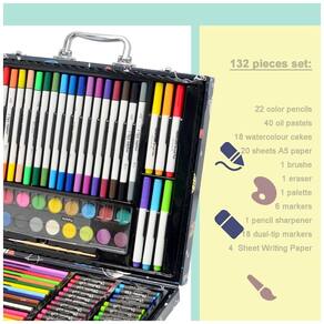 Este conjunto de arte deluxe de 132 peças inclui todas as ferramentas necessárias para um artista criar um belo conteúdo. É adequado para artistas iniciantes e veteranos, crianças e adultos. Este conjunto de arte de alta qualidade é amplamente utilizado por estudantes e artistas profissionais.