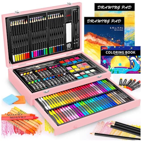 Tudo em um para todos O conjunto de arte contém muitos kits de desenho, dando aos pintores uma variedade de maneiras de pintar. Todos os itens são feitos de materiais não tóxicos. Este conjunto de desenho é muito adequado para crianças e adultos e é o melhor presente de arte para r a imaginação. Este kit de suprimentos de desenho oferece a artistas iniciantes, crianças e qualquer pessoa que procure suprimentos de arte de qualidade tudo o que eles precisam para ter sucesso em um estojo de arte completo. Kits de arte brilhantes e coloridos para inspirar o lado criativo das crianças.