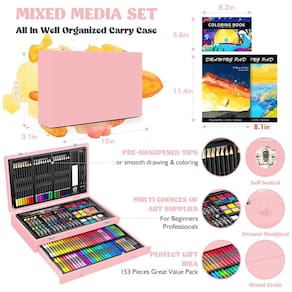 Fácil de transportar conjunto de desenho de caixa de madeira de 153 peças, facilitando para o seu filho colorir e criar em qualquer lugar que você possa abrir seu estojo O estojo de transporte portátil mantém seus componentes de arte organizados. Este conjunto de arte é ótimo para ambos os alunos, especialmente para qualquer criança que goste de rabiscar ou queira inspirar e aproveitar a alegria de desenhar e pintar. são ótimas ferramentas para mostrar o talento de desenho incrível para crianças e adultos