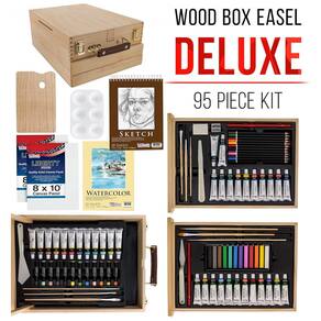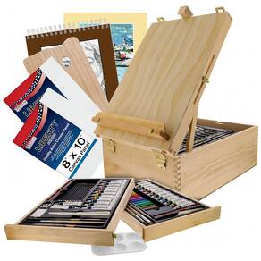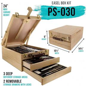 Conjunto de pintura de cavalete de caixa de madeira de 95 peças da US Art Supply 12 tubos de tintas a óleo, 12 pastéis de óleo, espátula de plástico, 3 pincéis variados para pintura a óleo, 2 painéis de lona de 20 x . 12 tubos de cores acrílicas, 12 pastéis de artista, 3 pincéis de pintura acrílicos variados, espátula, lápis Hb. 12 tubos de tintas aquarela, 12 pastéis de lápis aquarela, 3 pincéis variados de aquarela, bloco de papel aquarela. Almofada de papel de esboço, paleta de plástico com 6 poços, faca de plástico, lápis 2B, apontador de lápis, borracha de lápis. Cavalete de caixa com 3 gavetas, tamanho do cavalete Marca: Não Informado