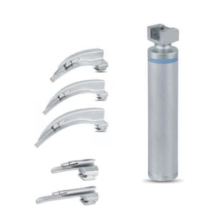 - KIT de Laringoscópio convencional com 5 lâminas, confeccionados em aço inoxidável e bordas lisas, acabamento da superfície de alta qualidade com iluminação em LED (Luz Branca) com 3.5V, em conformidade com a ISO 7376. - Fornece transferência máxima de luz fria, permitindo que os médicos obtenham uma visão ideal da laringe. Todas as lâminas e cabos reutilizáveis são totalmente autoclaváveis. - Material de Confecção: Aço Inoxidável; - Registro ANVISA nº 81766609001 - Iluminação: LED Branca - Tamanhos das lâminas Curvas: 2, 3 e 4. - Tamanhos das lâminas Retas: 2 e 3.