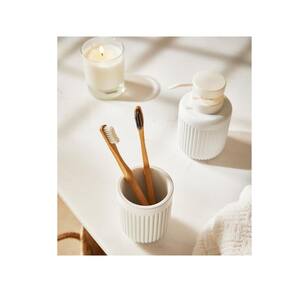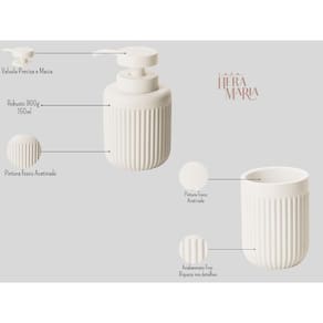 Características / medidas Dispenser: 14 x 8 x 10 axlxp cm Porta escova: 10 x 7.5 ax cm Cor: branco Material: 100% cimento