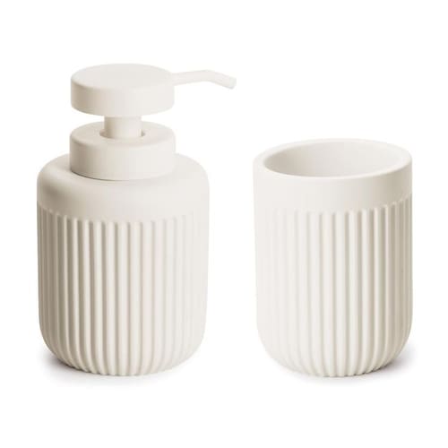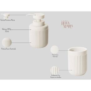 Características / medidas Dispenser: 14 x 8 x 10 axlxp cm Porta escova: 10 x 7.5 ax cm Cor: branco Material: 100% cimento