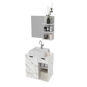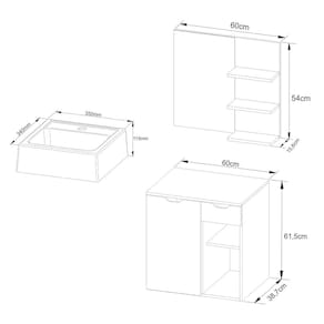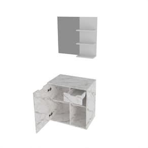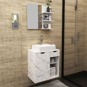 O Kit para Banheiro é a escolha ideal para dar um toque de elegância e organização ao seu espaço. Com um design contemporâneo, ele transforma o ambiente em um local mais convidativo e prático. Fabricado com materiais de alta qualidade, o kit oferece durabilidade e um visual sofisticado, tornando seu banheiro ainda mais funcional e bonito. CARACTERÍSTICAS TÉCNICAS: - Produzida em MDP de 15 mm - Acabamento UV na cor Mármore Branco e Branco - Cuba em Mármore Sintético - Acompanha Espelho - Gavetas com Corrediça Metálica - Puxador tipo Cava - Balcão Suspenso *Kit Composto por Gabinete Suspenso (3605), Espelheira (3608) e Cuba (3630) INFORMAÇÕES TÉCNICAS: 3605: Alt. 61,5 cm x Larg. 60 cm x Prof. 38,7 x P. 16,25 3608: Alt. 54 cm x Larg. 60 cm x Prof. 15,6 cm x P. 6,2 cm 3630: Alt. 11,5 x Larg. 35 x Prof. 334 cm P. 5,5 kg INFORMAÇÕES ADICIONAIS: - ATENÇÃO: Não trabalhamos e não nos responsabilizamos pela montagem do móvel. Antes da montagem conferir se o produto está de acordo com o que comprou, produto montado e danificado pela montagem não será aceito troca. Montagem e instalação por conta do comprador. - As imagens ambientadas são meramente ilustrativas e podem apresentar itens que não compõe o produto. As cores do produto podem variar de acordo com o monitor, a iluminação do ambiente ou sua percepção visual. - Limpeza: Deve ser feita com pano macio e seco ou levemente umedecido com água e sabão neutro. Não devem ser utilizados abrasivos como palha de aço e objetos cortantes. -Garantia para defeitos de fabricação conforme Código de Defesa do Consumidor.