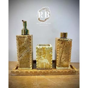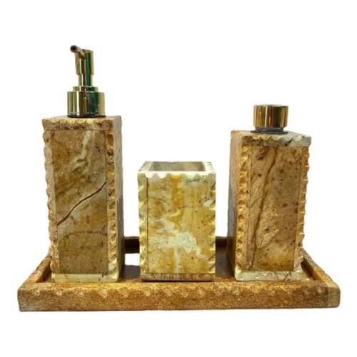 Kit Lavabo Em Pedra Rústica Difusor E Saboneteira Com Bandeja Rústico e funcional.