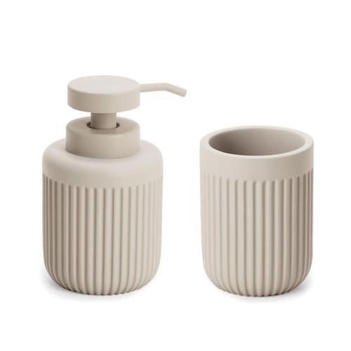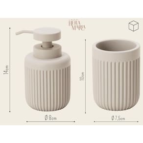 Kit lavabo luxo dispenser sabonete líquido porta escova Pequenos detalhes no décor do banheiro fazem toda a diferença nosso porta-sabonete líquido em cimento renova e diferencia o ambiente. O copo em cimento é perfeito para compor com os demais elementos. Pode ser utilizado para abrigar escovas de dentes, pincéis de maquiagem e outros objetos.