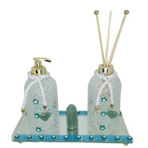Kit lavabo pedra natural difusor saboneteira-escolha a pedra Cor: quartzo verde Kit lavabo pedra natural difusor saboneteira-escolha a pedra escolha uma das cores disponíveis na opção cor do próprio anúncio. - turmalina negra: é uma pedra natural de proteção, limpeza, purificação e transformação das energias do ambiente. Essa pedra vai te proteger contra o mau-olhado e todas as energias negativas que de alguma forma atingirem o seu lar. Blinda o seu ambiente da sobrecarga energética e dispersa toda a tensão e o do ambiente. - pirita dourada: a pedra pirita é muito conhecida pela sua força em atrair prosperidade e é muito Utilizado por aqueles que procuram sucesso , bens materiais, abertura de caminhos. Traz a energia da prosperidade intensa ao ambiente que se encontra. - ametista roxa: a pedra ametista é o cristal da paz, da evolução espiritual e da conscientização. É uma pedra , pois ajuda a controlar os vícios, os maus hábitos, a dor, a ansiedade e a insônia. Estimula a entrada e aprofundamento em assuntos de espiritualidade, eleva o padrão vibratório da aura, dando equilíbrio geral e harmonia. Traz paz e equilíbrio ao ambiente. - quartzo verde: o quartzo verde é considerado a pedra da cura pelas propriedades calmantes e desintoxicantes de sua cor. Ele é capaz de acalmar o corpo, mente e coração, aumentando nossa paciência, favorecendo o equilíbrio emocional, sensação de bem-estar e também o sono. - sodalita azul: a sodalita é uma pedra de elevação espiritual, meditação e proteção energética. Também fortalece a mente, aumenta a intuição, facilita a meditação. As vibrações da pedra sodalita ajudam a expandir nossa consciência espiritual, acalmam as emoções e equilibram nossa energia mental. O kit lavabo é composto por uma pedra natural turmalina negra tamanho médio além dos pingentes de pedras turmalinas pequenas, bandeja espelhada, saboneteira e difusor, sendo que todas as peças são de vidro e decoradas de forma artesanal proporcionando requinte e delicadeza em peças de beleza única. Enviamos seu pedido em até 24 horas após a confirmação de pagamento Marca: Não Informado Ean: 7894135787805
