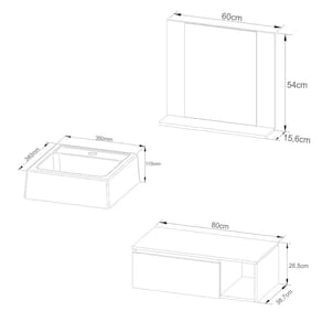 O Kit para Banheiro é a escolha ideal para dar um toque de elegância e organização ao seu espaço. Com um design contemporâneo, ele transforma o ambiente em um local mais convidativo e prático. Fabricado com materiais de alta qualidade, o kit oferece durabilidade e um visual sofisticado, tornando seu banheiro ainda mais funcional e bonito. CARACTERÍSTICAS TÉCNICAS: - Produzida em MDP de 15 mm - Acabamento UV na cor Amendôa - Acompanha Espelho - Cuba em Mármore Sintético - Porta Basculante com Dobradiça e Articulador - Balcão Suspenso - Puxador tipo Cava *Kit Composto por Gabinete Suspenso (3601), Espelheira (3610) e Cuba (3630) INFORMAÇÕES TÉCNICAS: 3601: Alt. 26,5 x Larg. 80 x Prof. 38,7 cm P. 10,8 kg 3610: Alt. 54 cm x Larg. 60 cm x Prof. 15,6 cm x P. 6,35 3630: Alt. 11,5 x Larg. 35 x Prof. 34 cm P. 5,5 kg INFORMAÇÕES ADICIONAIS: - ATENÇÃO: Não trabalhamos e não nos responsabilizamos pela montagem do móvel. Antes da montagem conferir se o produto está de acordo com o que comprou, produto montado e danificado pela montagem não será aceito troca. Montagem e instalação por conta do comprador. - As imagens ambientadas são meramente ilustrativas e podem apresentar itens que não compõe o produto. As cores do produto podem variar de acordo com o monitor, a iluminação do ambiente ou sua percepção visual. - Limpeza: Deve ser feita com pano macio e seco ou levemente umedecido com água e sabão neutro. Não devem ser utilizados abrasivos como palha de aço e objetos cortantes. -Garantia para defeitos de fabricação conforme Código de Defesa do Consumidor.