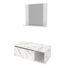 O Kit para Banheiro é a escolha ideal para dar um toque de elegância e organização ao seu espaço. Com um design contemporâneo, ele transforma o ambiente em um local mais convidativo e prático. Fabricado com materiais de alta qualidade, o kit oferece durabilidade e um visual sofisticado, tornando seu banheiro ainda mais funcional e bonito. CARACTERÍSTICAS TÉCNICAS: - Produzida em MDP de 15 mm - Acabamento UV na cor Mármore Branco e Branco - Acompanha Espelho - Cuba em Mármore Sintético - Porta Basculante com Dobradiça e Articulador - Balcão Suspenso - Puxador tipo Cava *Kit Composto por Gabinete Suspenso (3601), Espelheira (3610) e Cuba (3630) INFORMAÇÕES TÉCNICAS: 3601: Alt. 26,5 x Larg. 80 x Prof. 38,7 cm P. 10,8 kg 3610: Alt. 54 cm x Larg. 60 cm x Prof. 15,6 cm x P. 6,35 3630: Alt. 11,5 x Larg. 35 x Prof. 34 cm P. 5,5 kg INFORMAÇÕES ADICIONAIS: - ATENÇÃO: Não trabalhamos e não nos responsabilizamos pela montagem do móvel. Antes da montagem conferir se o produto está de acordo com o que comprou, produto montado e danificado pela montagem não será aceito troca. Montagem e instalação por conta do comprador. - As imagens ambientadas são meramente ilustrativas e podem apresentar itens que não compõe o produto. As cores do produto podem variar de acordo com o monitor, a iluminação do ambiente ou sua percepção visual. - Limpeza: Deve ser feita com pano macio e seco ou levemente umedecido com água e sabão neutro. Não devem ser utilizados abrasivos como palha de aço e objetos cortantes. -Garantia para defeitos de fabricação conforme Código de Defesa do Consumidor.