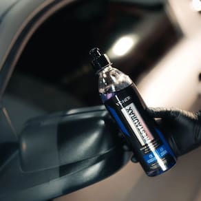 RESTAURAX renova e restaura superfícies plásticas, como para-choques, painéis e laterais de portas. Sua fórmula contém polímeros especiais que também protegem as peças contra as ações do tempo, evitando degradação precoce do material.