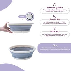 Conheça o Kit Lavanderia com 2 bacias dobráveis de plástico de 8L da Simplo.Multiuso, resistentes e fáceis de guardar, são itens ideais para organizar a lavanderia e economizar espaço! As bacias são retráteis e diminuem a altura em até 3 vezes.São de PP / TPR. Limpe bem e seque a bacia antes de guardar. Evite deixar no sol ou perto de outras fontes de calor. Não use com água sanitária e outros produtos que contenham cloro, removedores, produtos à base de petróleo ou líquidos oleosos.Leve funcionalidade e modernidade para sua casa!O kit contém:2 Bacias dobráveis de plástico 8L Marca: SIMPLO
