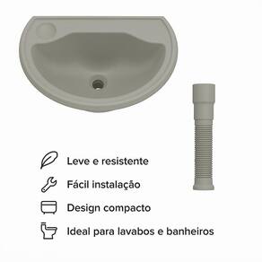 Kit Lavatório Plástico + Sifão Cinza Lavatório Cinza com Sifão Flexível - Valeplast Praticidade e durabilidade para o seu banheiro O Lavatório Cinza com Sifão da Valeplast é a solução ideal para quem busca um conjunto funcional, leve e resistente. Fabricado em plástico de alta qualidade, o lavatório possui acabamento discreto e moderno na cor cinza, combinando com diversos estilos de ambientes. Acompanha sifão flexível com tubo corrugado, fácil de instalar e ideal para instalações padrão de . Perfeito para banheiros residenciais, lavabos e áreas de serviço. Características do Produto: Lavatório: Plástico resistente na cor cinza Sifão: Flexível, com tubo corrugado em plástico de alta resistência Instalação: Rápida e prática Design: Moderno e discreto Leve e funcional: Ideal para espaços compactos Indicações de Uso: Banheiros residenciais Lavabos comerciais Áreas de serviço com cuba de apoio Itens Inclusos: 1 Lavatório em plástico cinza 1 Sifão flexível plástico : 3 meses contra defeitos de fabricação