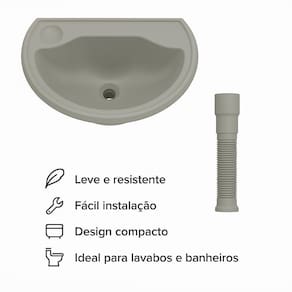 Kit Lavatório Plástico + Sifão Cinza Lavatório Cinza com Sifão Flexível - Valeplast Praticidade e durabilidade para o seu banheiro O Lavatório Cinza com Sifão da Valeplast é a solução ideal para quem busca um conjunto funcional, leve e resistente. Fabricado em plástico de alta qualidade, o lavatório possui acabamento discreto e moderno na cor cinza, combinando com diversos estilos de ambientes. Acompanha sifão flexível com tubo corrugado, fácil de instalar e ideal para instalações padrão de . Perfeito para banheiros residenciais, lavabos e áreas de serviço. Características do Produto: Lavatório: Plástico resistente na cor cinza Sifão: Flexível, com tubo corrugado em plástico de alta resistência Instalação: Rápida e prática Design: Moderno e discreto Leve e funcional: Ideal para espaços compactos Indicações de Uso: Banheiros residenciais Lavabos comerciais Áreas de serviço com cuba de apoio Itens Inclusos: 1 Lavatório em plástico cinza 1 Sifão flexível plástico : 3 meses contra defeitos de fabricação Ean: 7903506237693