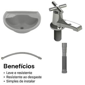 Kit Lavatório Plástico + Torneira+ Engate + Sifão Cinza Kit Lavatório Cinza Completo com Torneira, Sifão e Engate Metálico - Valeplast Tenha praticidade, qualidade e economia em um só produto com este conjunto completo para lavatório Ideal para banheiros e lavabos residenciais ou comerciais, o kit inclui tudo o que você precisa para uma instalação funcional e durável. Fabricado em materiais de alta resistência, o lavatório em plástico cinza da Valeplast combina leveza com durabilidade. Acompanha torneira cromada de mesa, sifão flexível e engate metálico, garantindo uma instalação prática e segura. Imagens meramente ilustrativas. ESPECIFICAÇÕES TÉCNICAS: Lavatório: Plástico resistente, cor cinza Torneira: ABS cromada, bica baixa, para lavatório de mesa Sifão: Flexível, plástico corrugado Engate: Trançado metálico com 40 cm de comprimento FUNÇÕES E CARACTERÍSTICAS: Produto leve e resistente Acabamento moderno e discreto Torneira com acionamento suave Sifão com alta flexibilidade, fácil instalação Engate metálico resistente à pressão da água Ideal para lavabos, banheiros e áreas de serviço COMPATIBILIDADE: Compatível com instalações padrão Indicado para banheiros residenciais e comerciais INSTRUÇÕES DE USO: Fixe o lavatório na parede de acordo com os pontos de ancoragem. Conecte o sifão à saída da cuba. Instale a torneira na entrada superior do lavatório. Conecte o engate metálico entre a torneira e o ponto de água. ITENS INCLUSOS: 1 Lavatório cinza em plástico Valeplast 1 Torneira cromada para lavatório de mesa 1 Sifão flexível 1 Engate metálico 60 cm DETALHAMENTO DE : do vendedor: 3 meses contra defeitos de fabricação Adquira agora o Kit Lavatório Completo e tenha uma solução prática, econômica e funcional para o seu ambiente
