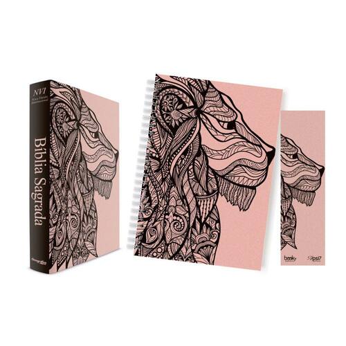 Kit composto por Caderno, Bíblia na versão NVI (Nova Versão Internacional) e um lindo marca página. Com o caderno você pode organizar os compromissos diários com elegância. A Bíblia Sagrada em edição especial para evangelização na Versão NVI (Nova Versão Internacional), é uma das mais modernas traduções que valoriza a clareza do texto, permanecendo fiel aos Escritos originais. Proporciona ao leitor uma linguagem mais atual e fluente. Incluindo panorama bíblico e mapas. O projeto de tradução para a língua portuguesa começou em 2000, a partir de uma reunião da comissão da Sociedade Bíblica Internacional. Um grupo formado por respeitados estudiosos brasileiros e de outros países foi reunido para produzi-la. Este projeto durou quase uma década. Muitos acham que é apenas uma tradução da americana, porém erram ao pensar assim, pois a versão em português foi feita no Brasil, o propósito dos idealizadores da NVI foi fazer um texto que se definisse por quatro elementos: precisão, clareza, beleza de estilo e dignidade. Com uma linguagem clara e mais próxima da atualidade, sem perder a beleza do estilo da linguagem bíblica. Cercada de elogios por conta do compromisso que conseguiu manter com os Escritos originais, esta versão da Bíblia já vendeu milhões de exemplares nos últimos anos, e vem se popularizando cada vez mais.