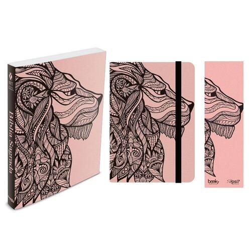 Kit Leão Rosa, composto por um lindo Moleskine para suas anotações e Bíblia na versão NVT - Nova Versão Transformadora, uma versão de fácil compreensão e entendimento, fiel ao texto original e em português contemporâneo. Contém um marca página que vai te ajudar a continuar sua leitura de onde parou. Uma ótima opção para presentear.