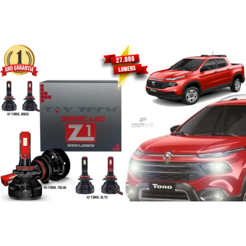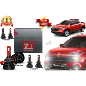 Kit Lâmpadas UltraLed CC-LOT FIAT TORO - Farol Foco Duplo (alto, baixo) + Milha 6500k com Canceller (sem aviso de erros no painel);