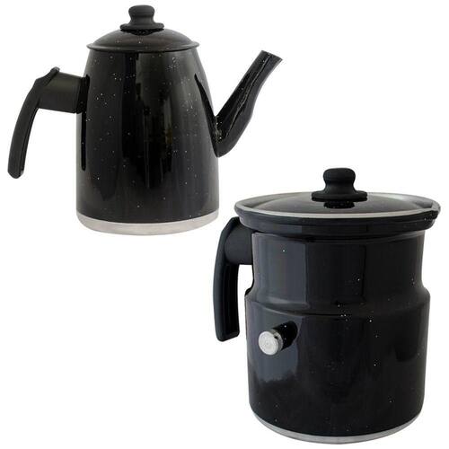 Kit Leiteira E Bule Gulê Alumínio 2 Peças Preta Kit Leiteira E Bule Gulê Alumínio 2 Peças Preta - Dica do chefe. Após o uso caso surja machas no interior da tampa ou da panela, basta ferver água com limão e vinagre branco para a remoção.