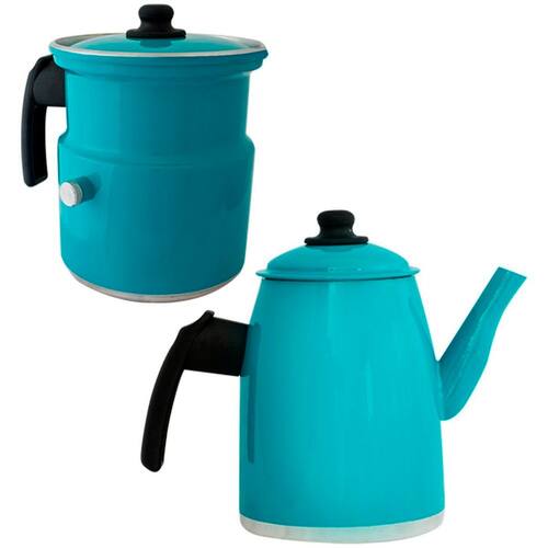 Kit Leiteira E Bule Gulê Em Alumínio 2 Peças Turquesa -