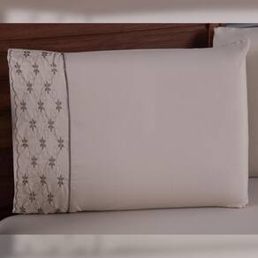 Confeccionado com um tecido extremamente macio em micro percal 300 fios, com toque de pêssego e com um elegante detalhe bordado.