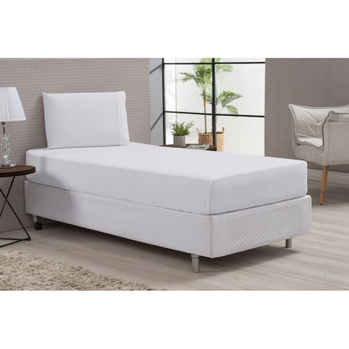 01 lençol com elástico para colchão de: 1,88 x 0,88m x 0,25 cm de altura.
