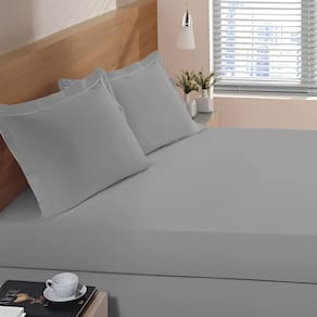 Kit Lencol Elástico e Fronha Casal 230 Fios Reffinata Buettner Cinza Metal
