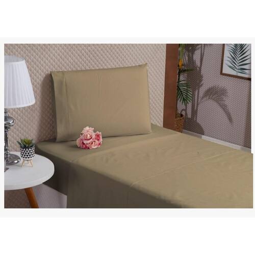 Kit lençol solteiro 3 peças algodão percal 180 fios cáqui Jogo de lençol solteiro 3 peças