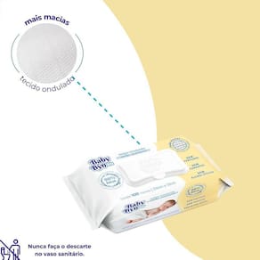 As toalhas umedecidas Baby Byn RN foram desenvolvidas especialmente para pele sensível e frágil do recém nascido por conter formulação enriquecida com extrato de babosa, extrato de rosas brancas e vitamina B5,contribuindo assim para a proteção da delicada pele do bebe, mantenho-a macia e hidratada.Especificações:Mais macias, tecido ondulado;Tamanho da toalha: 15cm x 20cm;Não contém Álcool etílico;Fórmula suave 96% água;Sem Perfume.