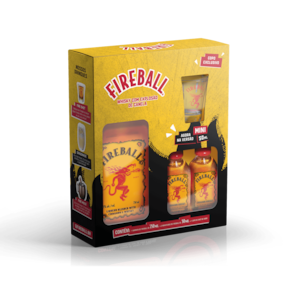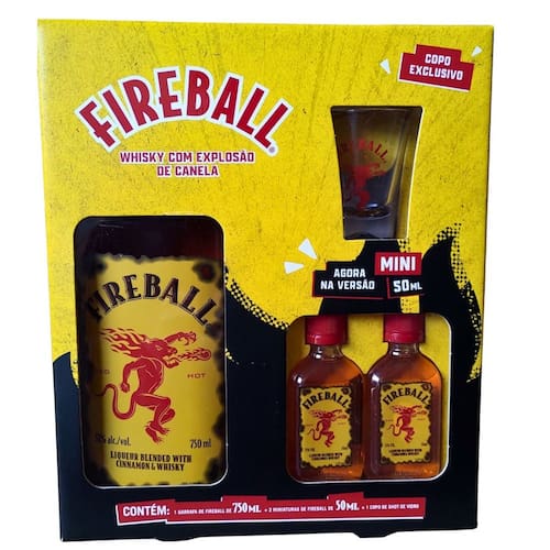 O Fireball vem apresentado em uma garrafa de 750ml, acompanhada de duas miniaturas de 50ml e um copo de shot, tornando-o uma excelente escolha para compartilhar com amigos ou para uma celebração especial. A embalagem elegante e prática possibilita que você leve seu licor preferido a qualquer lugar.