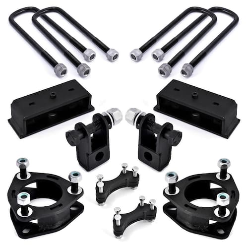 Kit lift calço suspensao dianteiro traseiro 5cm s10 2013 lift de suspensão. Permite elevar a suspensão do veículo com o objetivo de melhorar a performance do mesmo em terrenos off-road trilhas e rallys . Com essa alteração da altura do veículo, o desempenho em trilhas torna-se muito melhor, uma vez que é possível transpor obstáculos tais como atoleiros, erosões e quaisquer dificuldades com maior facilidade, pois o veiculo estará mais alto em relação ao solo. Com isso, também permite-se a colocação de pneus bem maiores, além do visual do veículo ficar bem mais imponente. Especificações : kit lift de 2 polegadas para subir 5 cm de altura. Fabricados em aço 1020. Pintura eletrostática, preto fosco. Produtos passam por banho de ácido e depois são zincados para ser pintados. Não precisa de adaptações