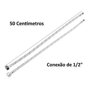 KIT LIG. FLEXIVEL MONOCOMANDO ACO TRANCADO QUENTE/FRIO 45CMProduto utilizado para a ligação entre a rede hidráulica e a torneira, o engate flexível é um equipamento que não pode faltar em sua cozinha, banheiro ou lavanderia. Além disso, este excelente modelo é uma ótima escolha para garantir o bom funcionamento de suas torneiras, pois é produzido em aço inox, um material de grande resistência e durabilidade de alto padrão, lembrando que por ser de Aço Inoxidável a peça é resistente a corrosões e não enferruja.Por ser flexível, adapta-se a qualquer tipo de instalação sendo de fácil manuseio, prático, seguro e resistente as variações de temperatura, podendo ser utilizado para água fria e quente até 90º .EspecificaçõesMaterial: malha de aço inoxSuporta alta pressão de águaBitola entrada água: 1/2" polegadaUtilização: cozinha, tanque ou lavatórioInstalação: em torneiras monocomandoComprimento total do flexível: 50 centímetrosBitola: fêmea de 1/2 polegada e macho de 1/8 polegadaAcompanha 02 unidades de 50 cm