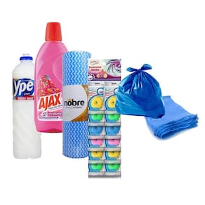 Contem no anuncio 1 Unidade Detergente Líquido Coco Ypê 500ml 3 Unidades Limpador Ajax Bouquet De Flores 500ml 1 Unidade Pano Multiuso Nobre Plus 30m X 30cm Azul Com 60 Panos 12 Unidades Pedra Sanitaria Sampa Clean 100 Unidades Saco De Lixo Azul 20l Pacote Ean: 7891454381004