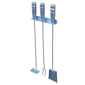 Caixa contém: 1 garfo churrasqueiro 59 cm; 1 rastelo espalhador de brasa 59 cm; 1 pá de limpeza 59 cm 1 suporte de parede.