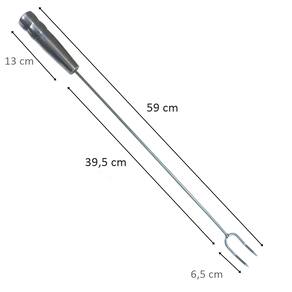 GARFO DE CARNE 59 CM Garfo Grande para Assados, Carnes, Churrasco, produto feito com material de alta qualidade, com seu design moderno, indispensável em sua cozinha ou na hora daquele churrasco. Possui uma pegada confortável com cabo de Alumínio 13 cm. Material do Cabo: Madeira revestido de Alumínio 13 cm Material do garfo: Aço Medida do garfo: 46 cm Medida total: 59 cm