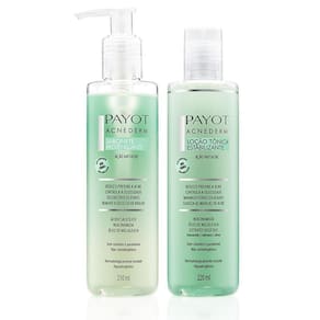 Kit Limpeza e Tonificação Acnederm Payot O Kit Limpeza e Tonificação Acnederm, contém: 1- Sabonete higienizante líquido facial acnederm 210ml O Sabonete Higienizante Acnederm Payot, foi formulado com Ácido Salicílico, Niacinamida e Óleo de , que conferem limpeza profunda eliminando as impurezas, sem irritar ou ressecar a pele. Controla a oleosidade excessiva, deixando a pele limpa e hidratada ao longo do dia. Desobstrui os poros. Diminui a vermelhidão e o inchaço causado pela acne. Seu uso contínuo ajuda na prevenção de formação de cravos e espinhas. Pele macia e com viço natural. Sensação refrescante. 1- Loção tônica estabilizante 220ml A Loção Tônica Estabilizante Acnederm Payot auxilia na redução da acne e previne a formação de novas espinhas. Possui ação adstringente e refrescante que limpa profundamente e controla a oleosidade ao longo do dia. Não resseca a pele. Sua fórmula enriquecida com Extratos Vegetais, Óleo de e Niacinamida minimiza os poros dilatados, combate a vermelhidão, suaviza as marcas de acne e acalma a pele. Vegano; Sem Corantes e Parabenos; Não Comedogênico; Dermatologicamente Testado; Hipoalergênico; Livre de ingredientes de origem animal e não testado em animais. Marca: Não Informado Ean: 7892382583348