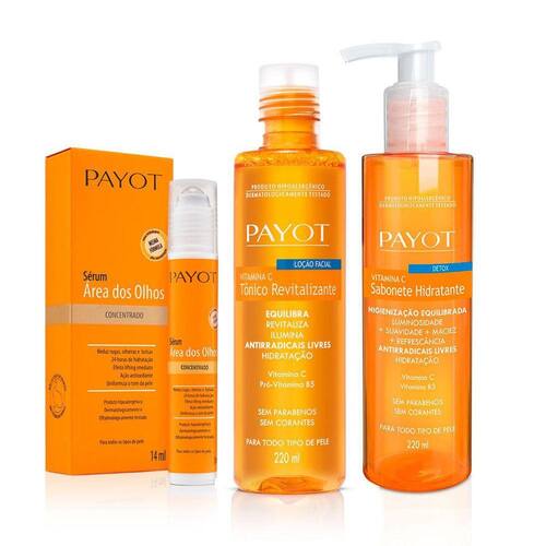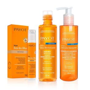 Kit Limpeza Tonificação e Tratamento Olhos Vitamina C Payot O Kit Limpeza, Tonificação e Tratamento olhos Vitamina C Payot conta com 3 itens da linha Vitamina C: